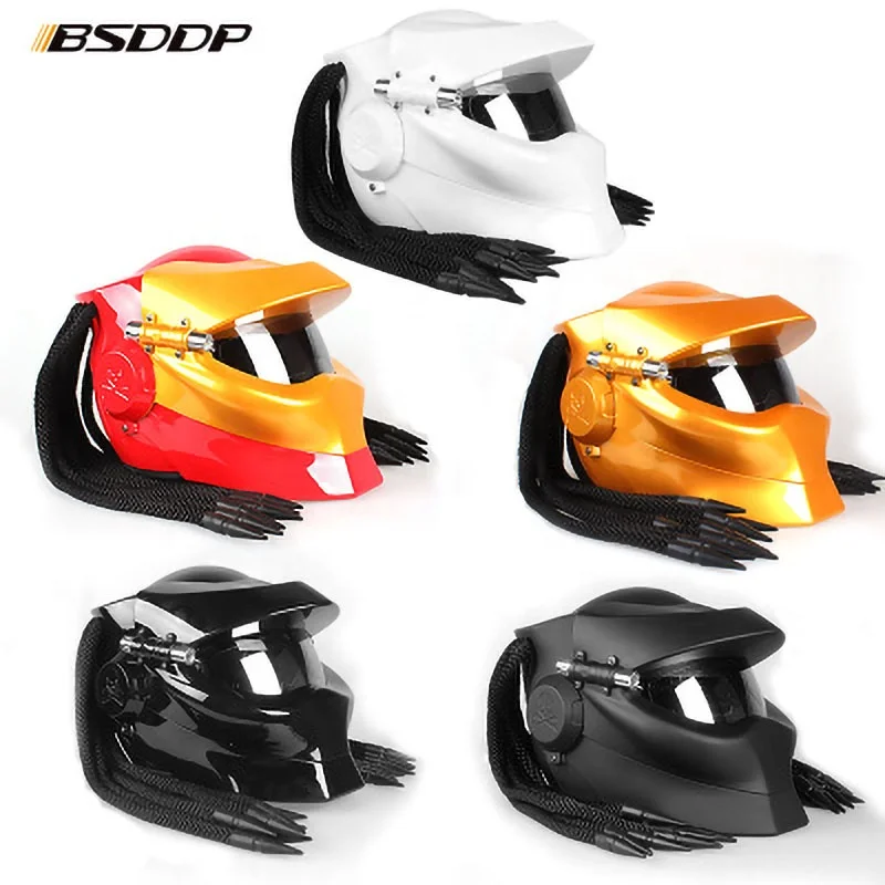 Predator Fiber glass Motorcycle Helmet Full Face Iron Warrior Man unique stylish flip up Helmet moto with LED spotlight